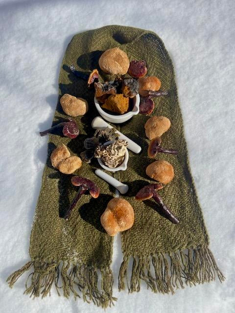 Our Master Mushroom Elixir is a powerful Spagyric Formulation designed to harmonize the body and mind, offering the vital nourishment of nature’s most revered fungi: Appalachian Reishi and Turkey Tail, Alaskan Chaga, Japanese Maitake, Lion’s Mane, and parasitically grown Cordyceps Militaris*.