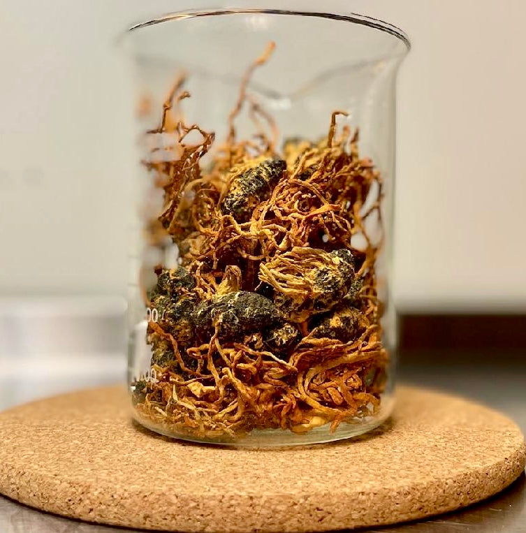 *The method in which mushrooms are grown, the parts used and the extraction methods have a huge impact on their level of potency. The Cordyceps Militaris in our formulation are grown parasitically on silkworm pupae, closely replicating their natural growth cycle. This significantly increases its cordycepin content compared to most preparations where it is cultivated on grain or rice substrates. This massively enhances its ability to support stamina, vitality, and efficient oxygen utilization in the body.